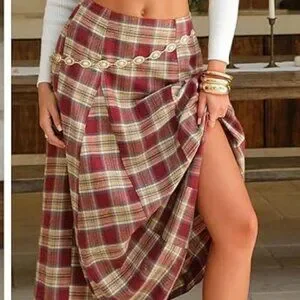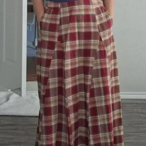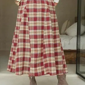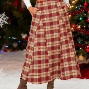 Classic vintage plaid pattern, high waist, side pockets, casual aline style flared pleated hem, green skirt, red skirt, midi skirts for women, high waisted skirts for women, long skirts