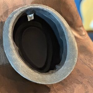 Stylish gray fedora hat. Perfect for any occasion. Adds a touch of elegance.