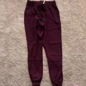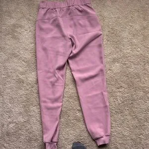 Comfortable pink and purple jogger pants with elastic waistband. Ideal for everyday wear.