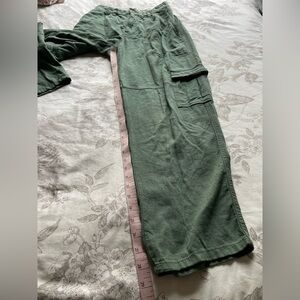 Anthropologie Pilcro Slim Linen Cargo Beach Pants XS Olive Green Baggy Relaxed