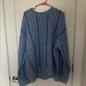 Embrace comfort and style with this blue and white striped sweater. Perfect for layering and adding a chic touch to your wardrobe.