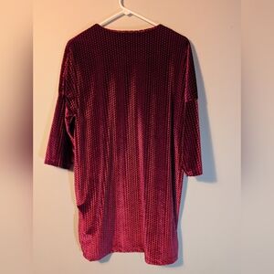 Elevate your wardrobe with the ZARA Burgundy Velvet Tunic Top, a stunning blend of comfort and style. This exquisite piece features soft velvet fabric that feels luxurious against your skin, making it perfect for both casual outings and special occasions. The rich burgundy hue adds a touch of sophistication, ensuring you stand out effortlessly. Designed to flatter every figure, this tunic top provides a relaxed fit that drapes beautifully. Pair it with jeans or dress it up with tailored pants for an instantly chic look. Don't miss out on this versatile addition to your closet; limited stock is available!