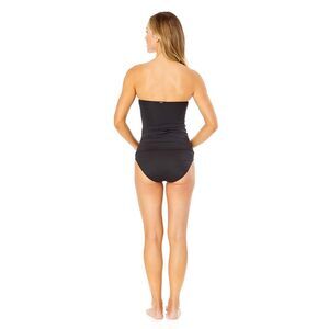 Anne Cole Solid Twist Front Shirred Bandeau Tankini Swim Top Black Large