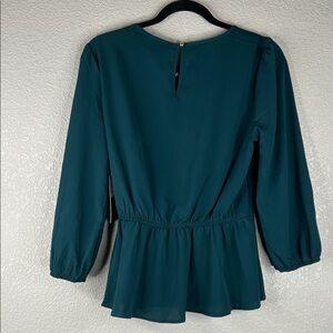 OLM Emerald Green 3/4 Sleeve Faux Wrap Peplum Flowy Top Size Medium New with tag