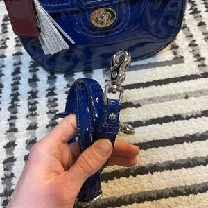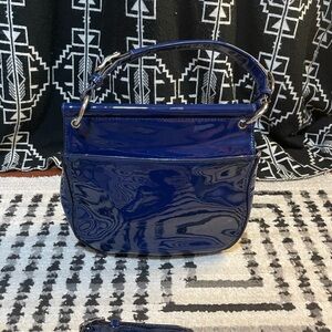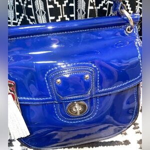Very good used condition! A little bit of minor scuffing throughout as patent can be temperamental. Clean inside. No odors. No overt flaws. Lightly used. Hang tag & crossbody strap included.