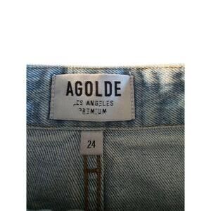 AGOLDE Skirt Womens 24 Blue Denim Mini Asymmetrical Distressed Frayed