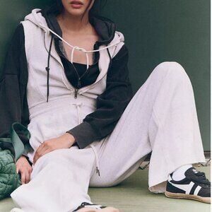 Lovely for layering up over a long sleeve or simply styling solo, this super versatile jumpsuit is featured in a relaxed, slouchy style and sweatshirt-inspired fabrication with zip-front, hooded neckline and wide legs at bottom for the most effortless finish. Relaxed fit, Hooded style; zip-front closure; drawstring waistband; wide legs; dropped armholes; side pockets; defined seaming throughout, Forever cool and classic, this goes-with-anything jumpsuit is sure to be your top pick to take you from a weekday stroll to a weekend workout sesh.