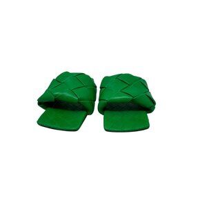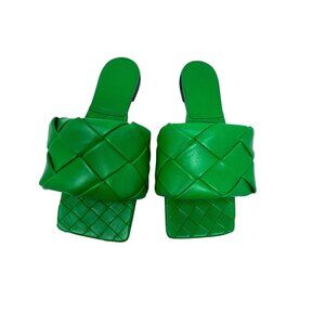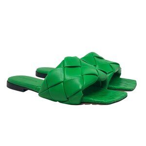 Bottega Veneta Nappa Maxi Intrecciato Lido Flat Sandals Green Size 37.5 7.5