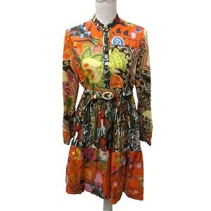 Gucci Fit And Flare Dress Womens 40 Small Floral Printed Belted Boho Designer