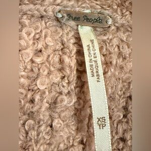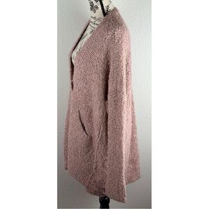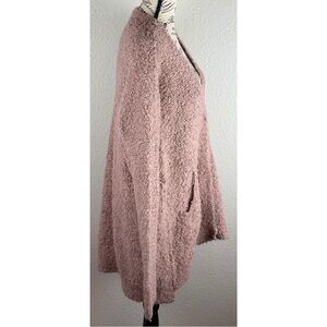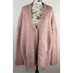 Free People Pink Boucle Fuzzy Chunky Knit Oversized V-Neck Cardigan, size XS