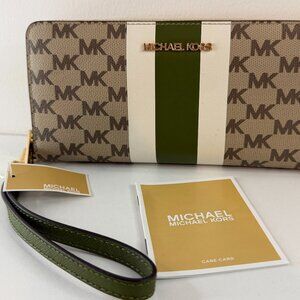 Michael Kors Evergreen MLT Center Striped Large Travel Continental Wallet NWT