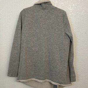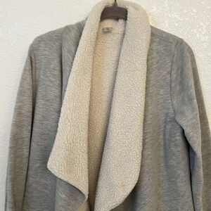 Almost like a robe, it is so soft!! Size medium good condition. Just don’t reach for it but great to throw in over pjs or over a tee. Sherpa lines and so cozy!