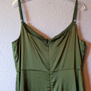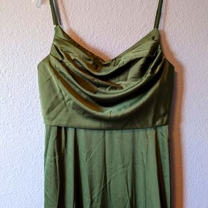 NEW Somifa Olive Green Satin Maxi Dress Cowl Neck Spaghetti Straps Prom Sz. 14
