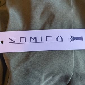 NWT Somifa Olive Green Satin Maxi Dress Cowl Neck Spaghetti Straps Prom Sz. 14. Brand new with tags