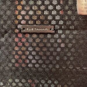 Chic and modern blazer by Elie Tahari. Features a sleek design with front hook and mesh back panel with zippers