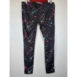 Tipsy Elves XL Black Paint Splatter Leggings Women's Yoga Pants Holiday Rainbow