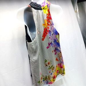 Single by Los Angeles Floral/ Poke-a-dot Artwear Silk Lined Halter Blouse Small.