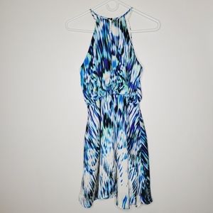 Forever 21 Mini Dress Women Small Blue Halter Watercolor Flirty Caribbean Resort