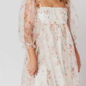 Worth Collective floral maxi dress featuring sheer sleeves. Bump friendly, perfect baby shower or maternity photo dress.
