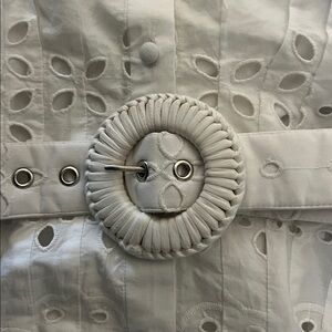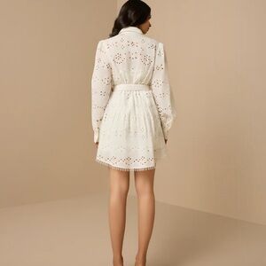 Never worn off white Hemant & Nandita eyelet dress. No flaws. This elegant eyelet dress is perfect for any occasion. Featuring intricate cut-out details and a stylish belt, it offers both comfort and style.