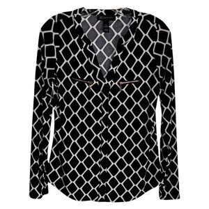 This I.N.C. International Concepts blouse features a black and white diamond print, suitable for office and casual wear.