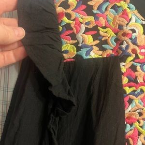 KIRUNDO Women’s black with embrodiey Mini Dress V Neck Bohemia Dress sz XL