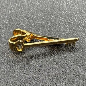 Elegant gold tone key shaped tie clip. Perfect for adding a touch of sophistication.