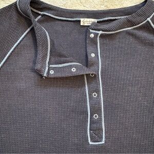 Free People Early Nights Heather Grey Henley Thermal Long Sleeve Top Size Small