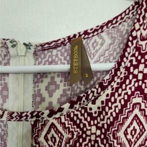NWT Stetson Keyhole Neckline Bell Sleeve Mini Dress Size 2 Western Geometric Red. Back Zip. Lightweight. No flaws. 100% Rayon.