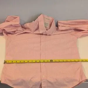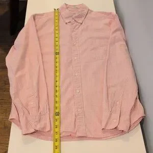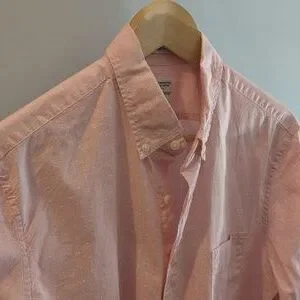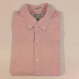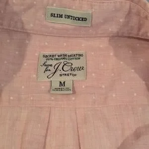 J. Crew Men's Medium Slim Untucked Stretch Long Sleeve Button Down Shirt Style #AM367J. Button down collar. Single chest pocket. 98% organic cotton, 2% elastane. Slim untucked stretch fit. Pink with white polka dots all over. Shirt is in excellent used condition. Please see photos for details and measurements.
