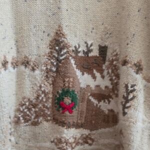 Norther Isles Hand Knitted Cozy Holiday Cardigan with Village Scene Sz M