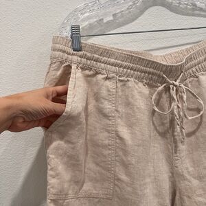 Lands End Drawstring 100% Linen Shorts Womens Sz 1X (16-18)High Rise Tan