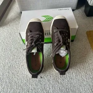 Chic dark brown suede sneakers by Cariuma. Worn once. Trying to trim my closet - too many shoes and no enough room.