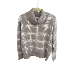 Women's MAX STUDIO Beige Plaid Cowl Neck Sweater XL