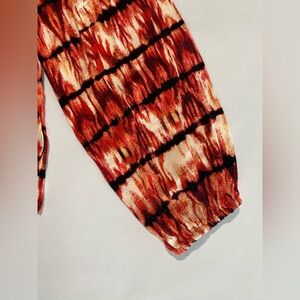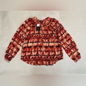 NEW Size XL Women's Bobeau Smocked Long Sleeve Blouse Orange Ikat