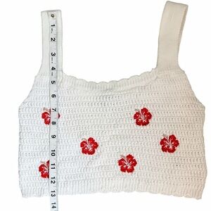 Add a playful tropical flair to your wardrobe with this stylish two-piece set from Wild Fable. Featuring a white crochet knit design adorned with red embroidered hibiscus flowers, this matching crop top and skirt set is perfect for summer, vacations, beach days, festivals, or casual outings.