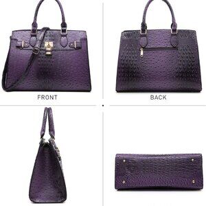 Features: Crafted from vegan leather with durable gold-tone hardware and a decorative lock for a stylish touch. The tote features a spacious main compartment, inner zipper pocket, back zip pocket, and two slots — perfect for staying organized. Comes with a matching clutch that fits essentials and hands-free options with an adjustable, removable shoulder strap.