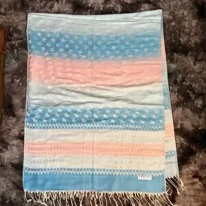 Elegant blue and pink pashmina scarf. Perfect for any occasion.