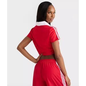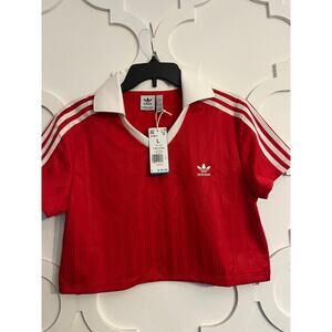 NEW ADIDAS Adicolor Football Jacquard XL - Red Cropped Polo