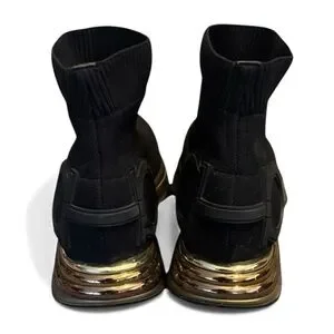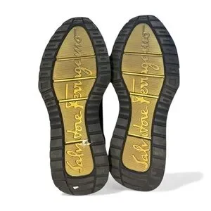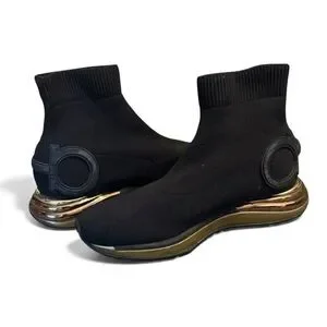 Salvatore Ferragamo Gancini Black Gold Sock Sneakers 8 Shoes Holiday Gift Ready