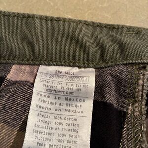 Durable flannel-lined Carhartt utility pants in moss, great color for the holiday season. Ideal for work or casual wear with extra warmth for outside chores-barn, ranch, or farm work.
