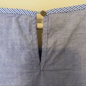 Blue striped peplum and bell sleeve ruffles. 100% cotton. Keyhole button closure back.