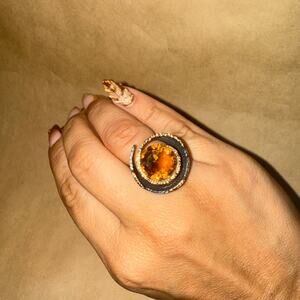 Turkish Zultanite Gem Hammered Black Rhodium 925 Sterling Silver and Gold Ring