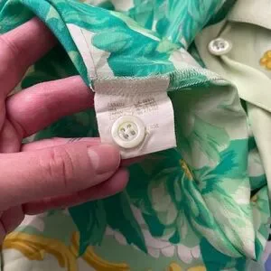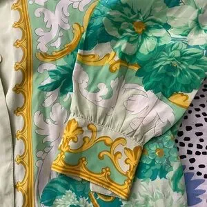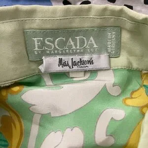 Bold and unusual vintage ESCADA 100% silk button down shirt blouse. This might be the perfect opulent St Patrick’s shirt. Inherited from my MIL but just not my jam. Reminds me of vintage Versace