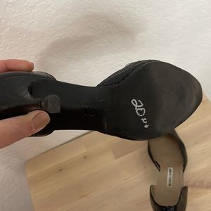 Manolo Blahnik D’orsay embossed black leather women’s heels size 7 used good