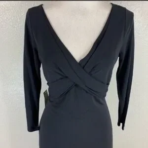 NWT Ann Taylor black cross front midi dress 6. 3/4 length sleeves. New with tags. Approx 41 inches long, midi length. Rayon polyester. Size 6