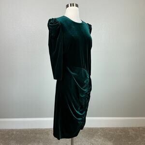 Vince Camuto Long Sleeve Velvet Ruched Midi Sheath Cocktail Dress Green Size 14