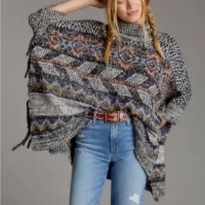 Anthropologie Pilcro Magda Knit Poncho boho heavy knit sweater M/L