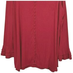 Soft Surroundings Women’s Longer Length Button Front Long Ruffle Cuff Tunic Top XL 16/18 Dark Red