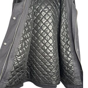 High-quality construction with leather-trim accents, quilted interior, and a flattering longline silhouette.